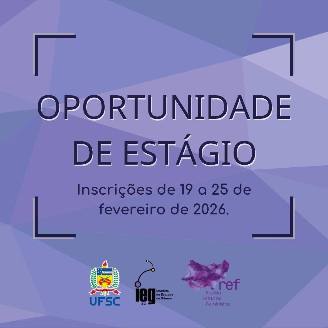 A Revista Estudos Feministas, da Universidade Federal de Santa Catarina (UFSC), torna público que estarão abertas as inscrições para o PROCESSO DE SELEÇÃO DE ESTUDANTES PARA ESTÁGIO NÃO OBRIGATÓRIO.