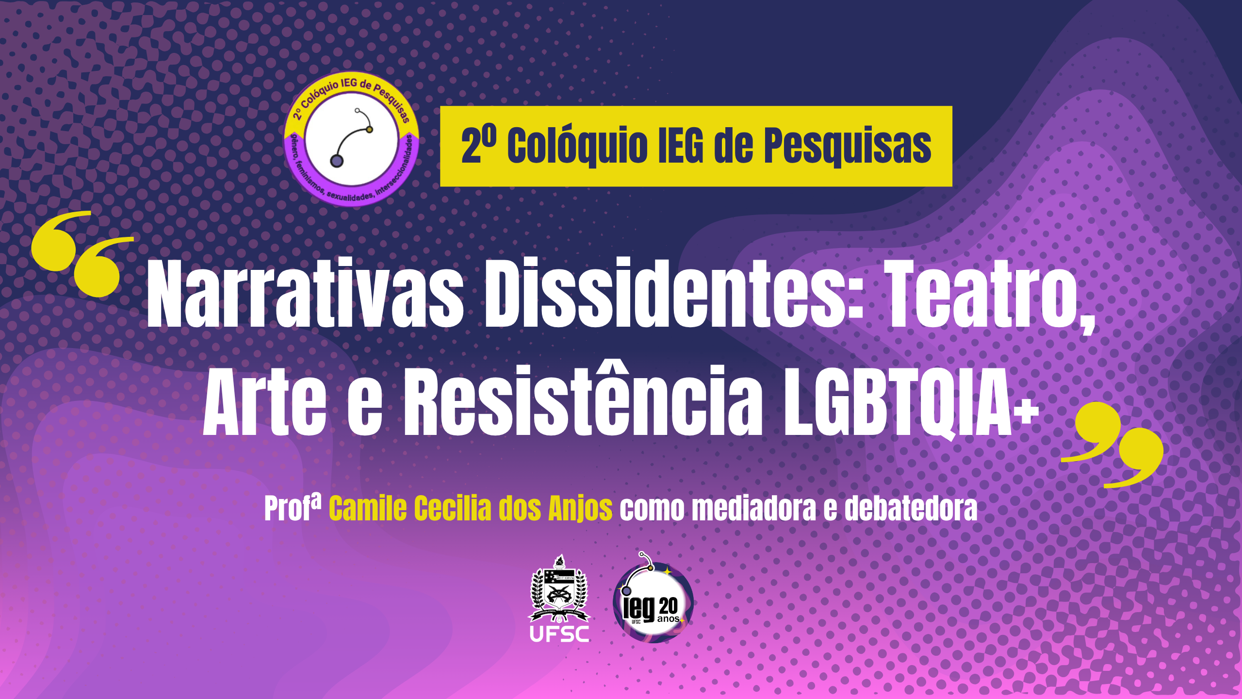 O 2º Colóquio IEG discute teatro e resistência LGBTQIA+ com pesquisas que tensionam as fronteiras entre cena, política e dissidência. Mediado pela professora Camile Cecilia dos Anjos, o evento traz reflexões sobre memória trans, censura à arte queer e festivais como espaços de insurgência feminista.