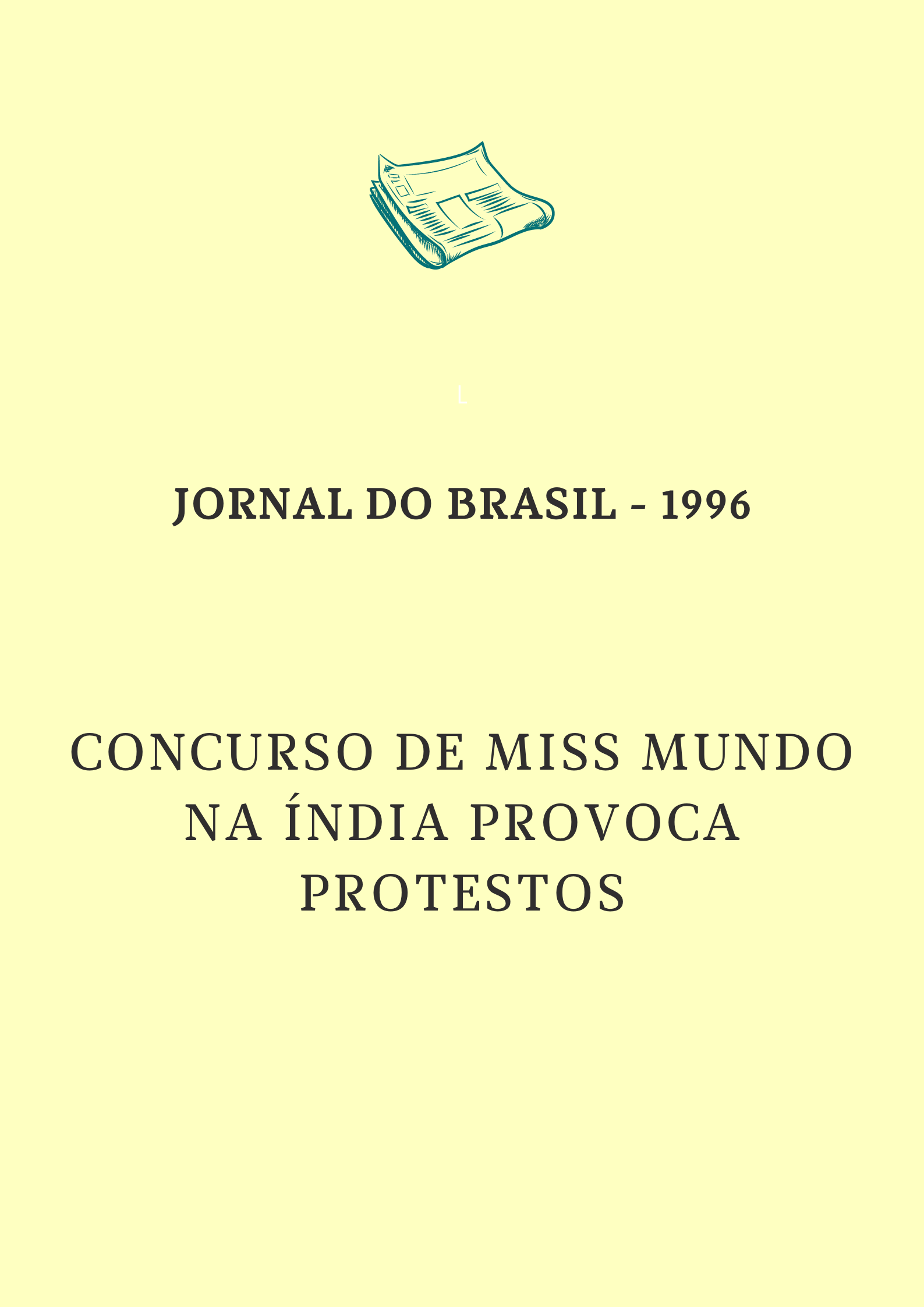 Matéria do Jornal do Brasil (1996) sobre protestos de feministas contra o concurso de beleza que estava acontecendo na Índia por serem contra transformar mulheres em objetos de consumo, algumas mulheres chegaram a ameaçar suicídio coletivo durante o evento.