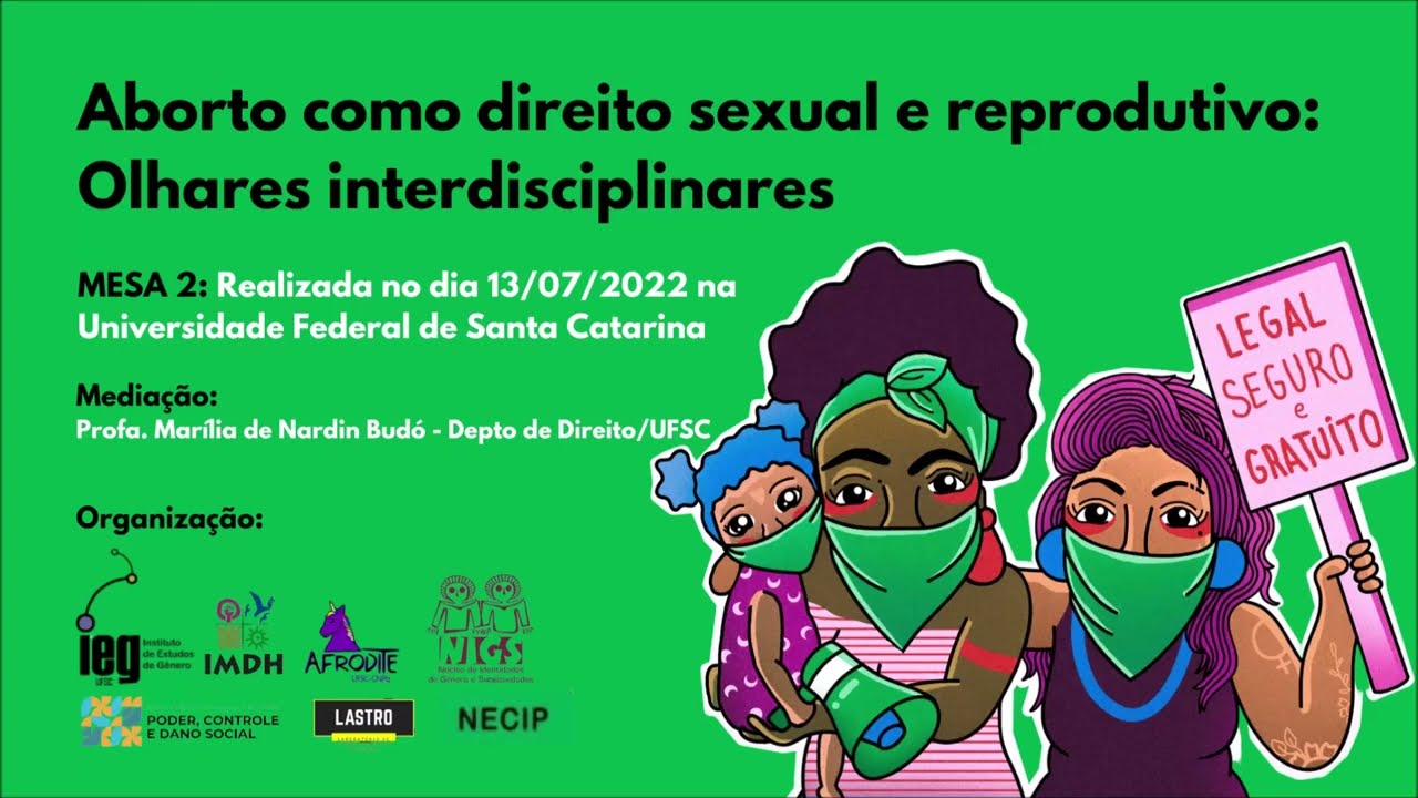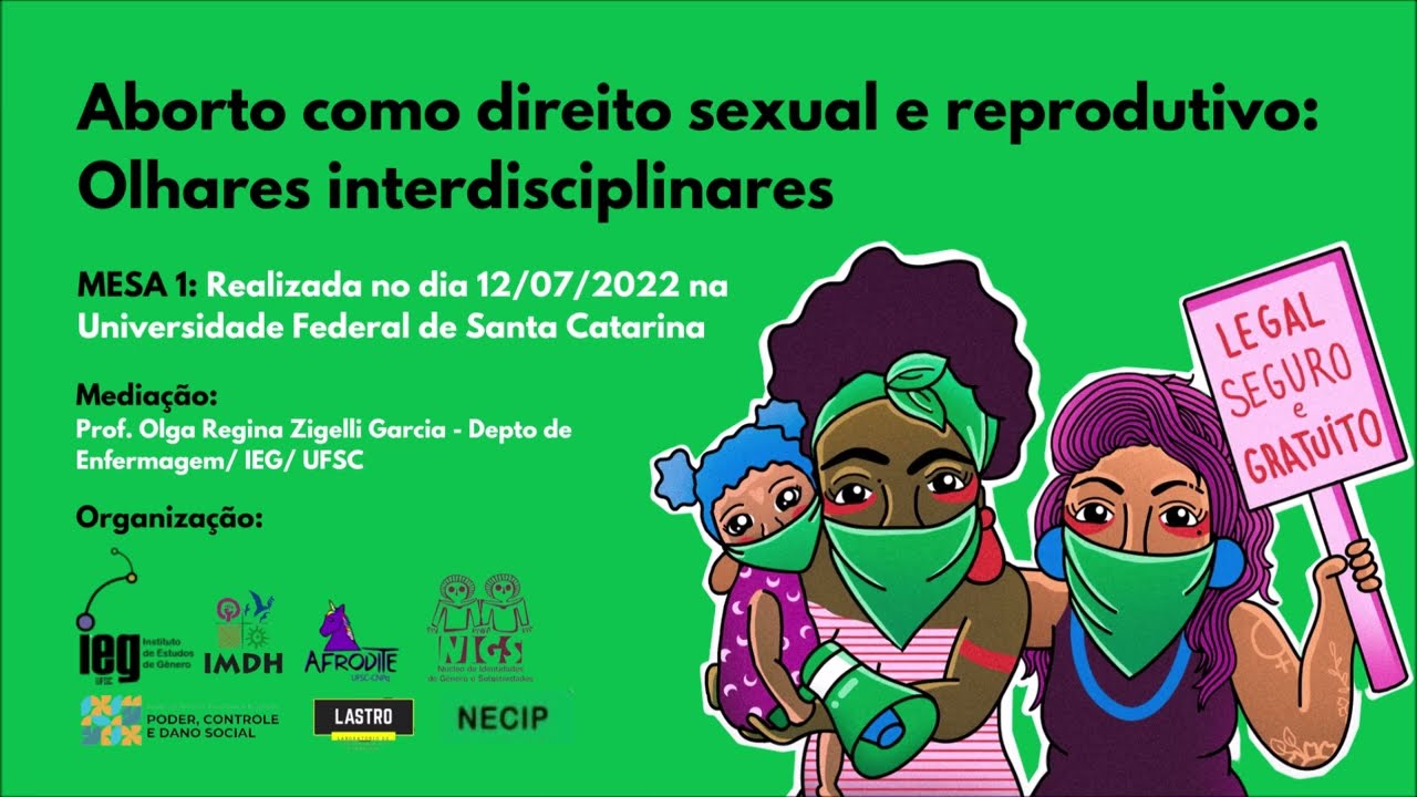 Evento realizado no dia 12/07/2022 às 18h30 (Fórum do Norte da Ilha ao lado do CCJ/UFSC) Palestrantes: Cláudia Dadico – Juíza Federal, conselheira da Associação de Juízes pela Democracia (AJD); Daniele Rosendo – Pesquisadora em filosofia, direito e bioética; Silvana Pereira – Enfermeira HU/UFSC; Malu Alves Batista Mendes – Psicóloga, Frente Catarinense pela legalização do aborto; Ale Mujica Rodriguez – Médique e ativista; Miryam Aldana – Católicas pelo Direito de Decidir