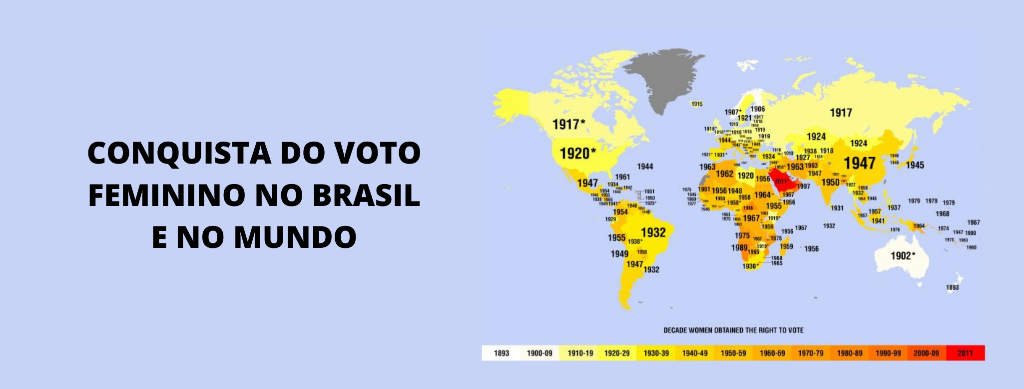 Hoje, 24 de fevereiro, é comemorado os 89 anos da conquista do voto feminino no Brasil, vêm conferir um pouco sobre o voto pelo mundo!