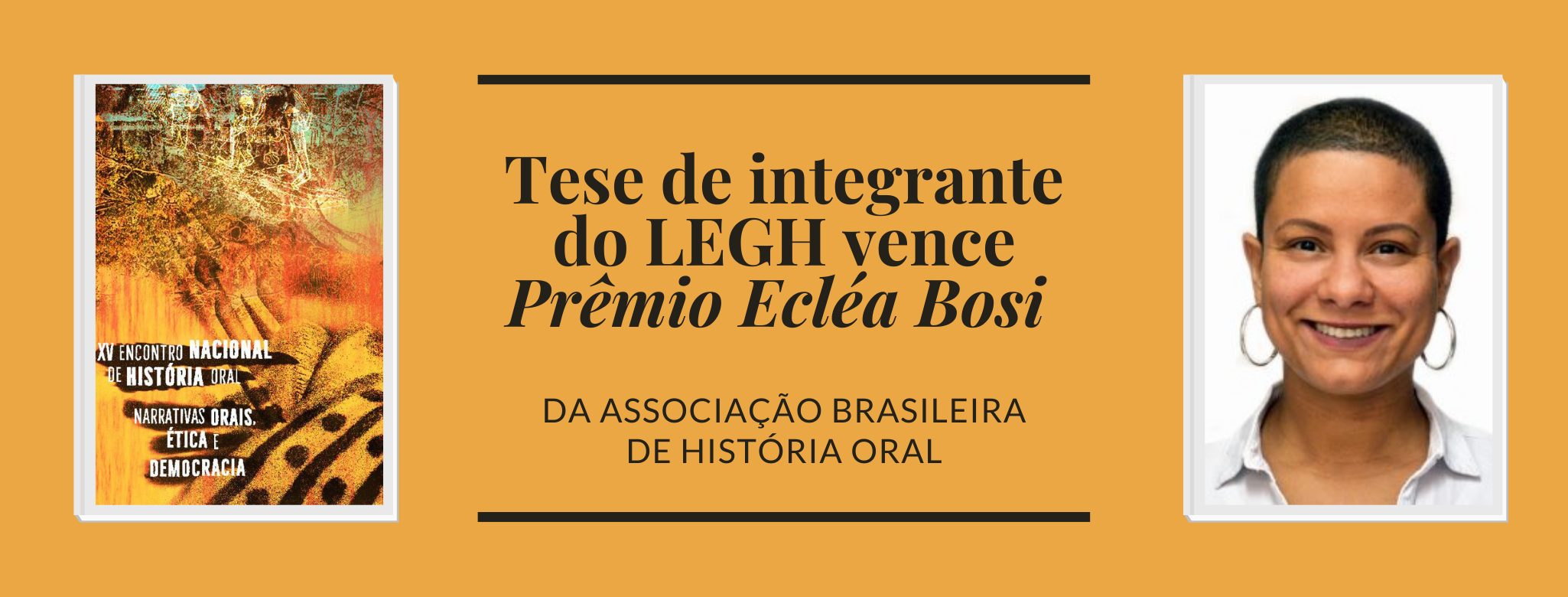 O II Prêmio Associação Brasileira de História Oral de Teses Ecléa Bosi, foi concedido a Tauana Olivia Gomes Silva, integrante do LEGH.