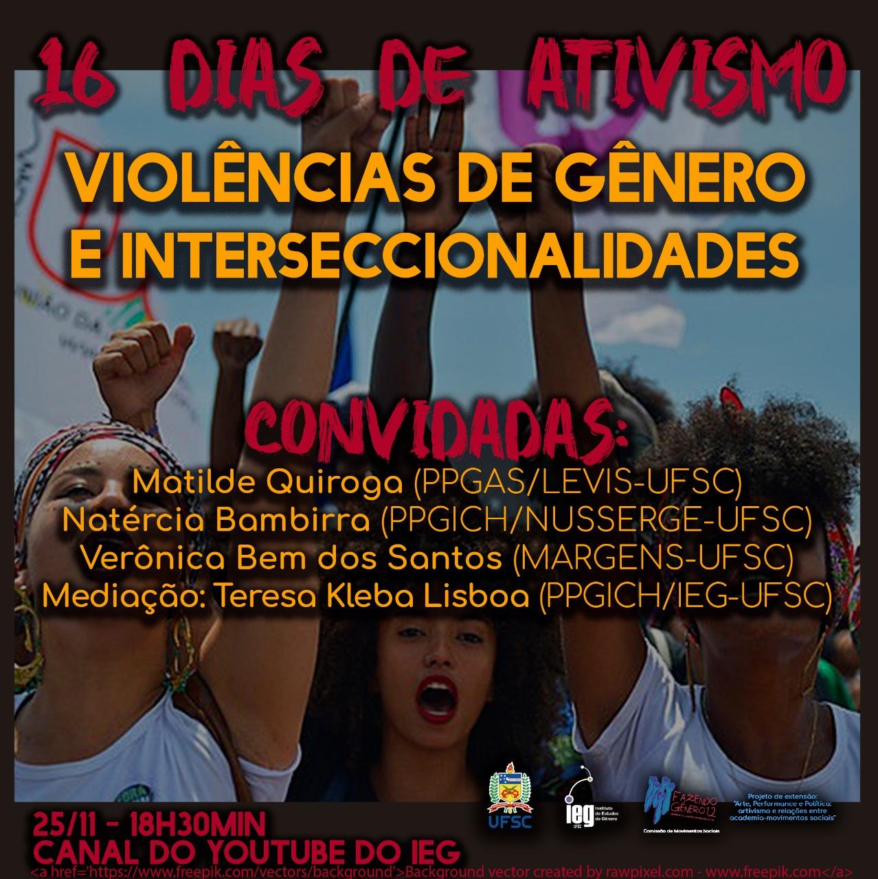 No dia 25 de novembro, a roda de conversa "Violências de gênero e interseccionalidades" abrirá a campanha do IEG no 16 dias de ativismo. Saiba mais!